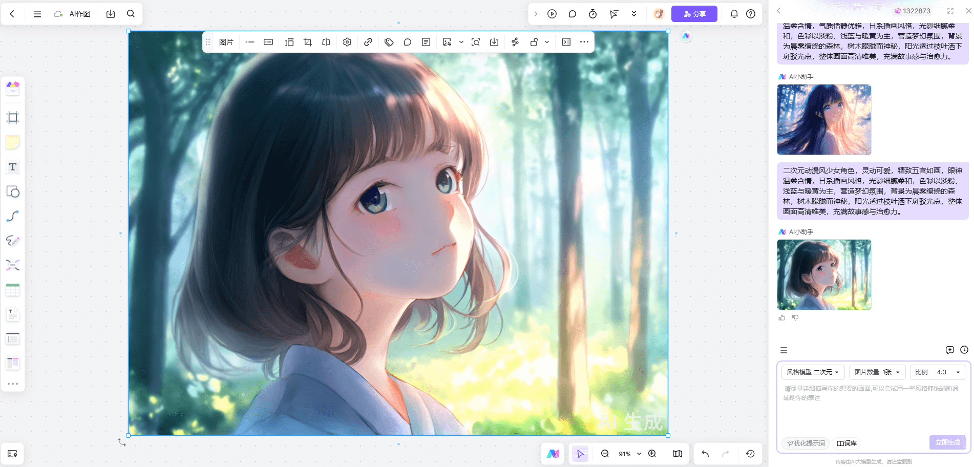 推荐使用boardmix博思白板进行AI作图,它不但操作简单、具备中文理解能力,且提供免费试用,生成的图片也可以商用。👉免费体验boardmix AI作图在线生成