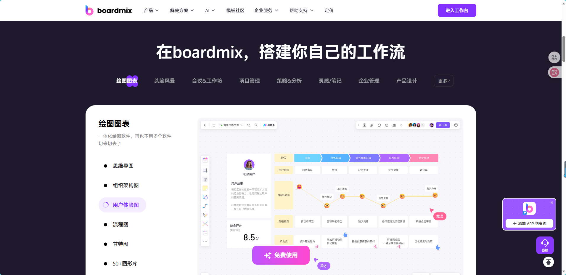 在增长与产品团队中,boardmix博思白板被广泛用于用户生命周期、增长模型与用户旅程的共创场景,主要优势体现在: